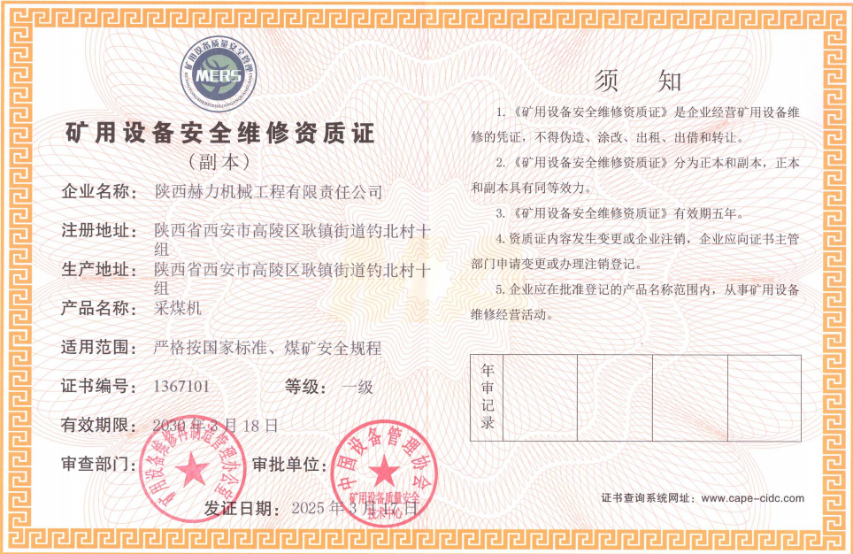 礦用設(shè)備維修安全資質(zhì)證